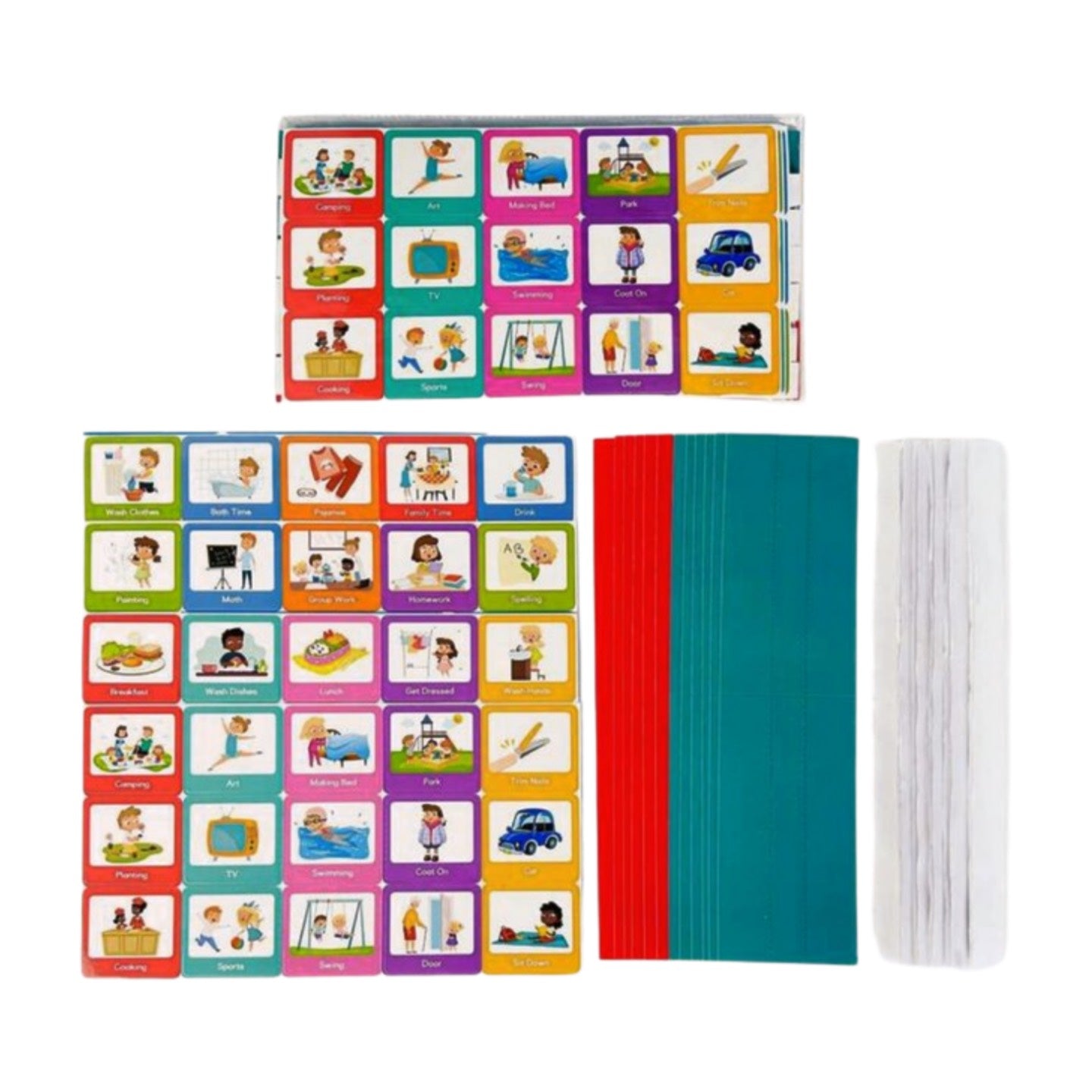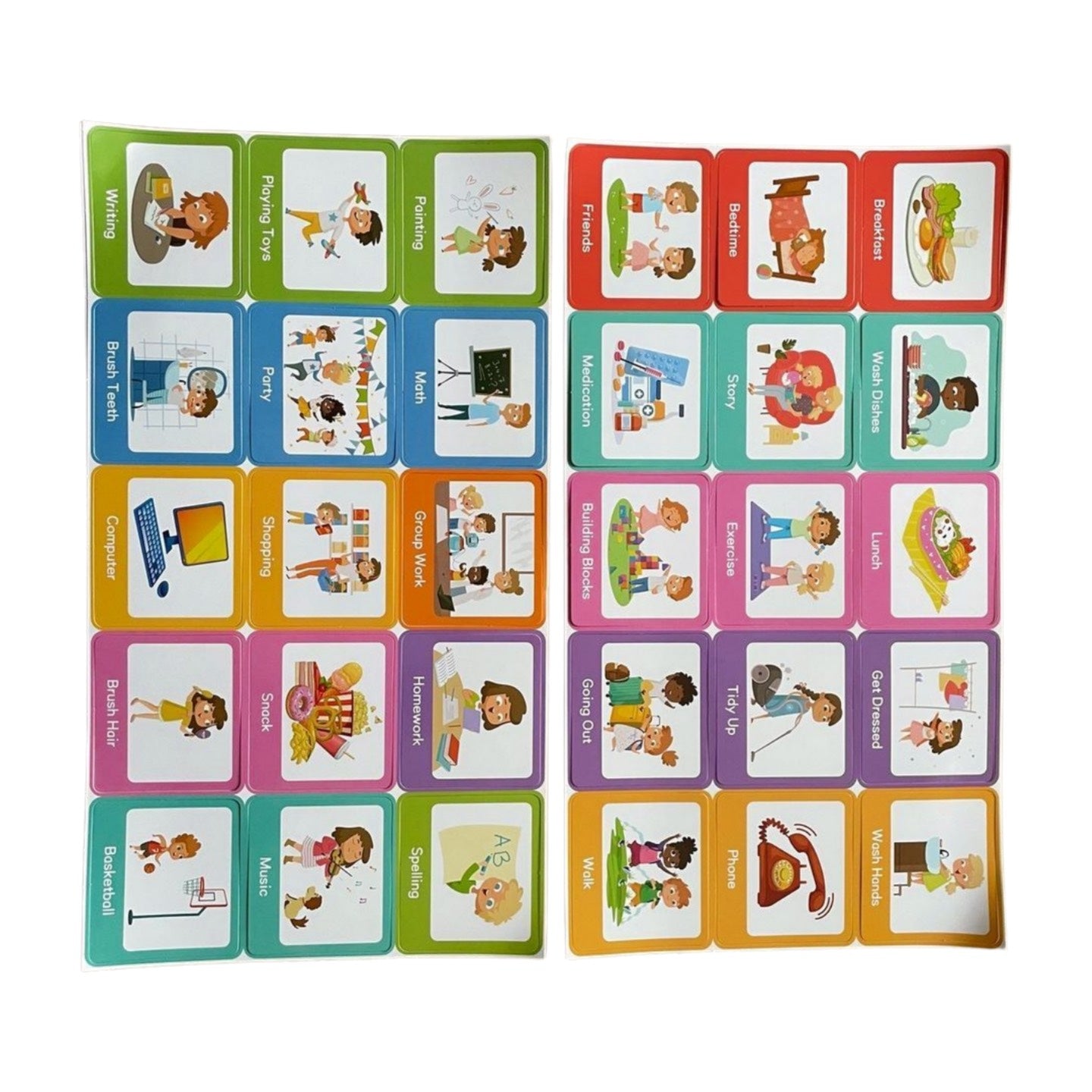 DIY adjustable Routine board. Make daily routines and transitions easier, consistent and predictable with our 60 visual cards easily adjusted with Velcro to change routines when needed.